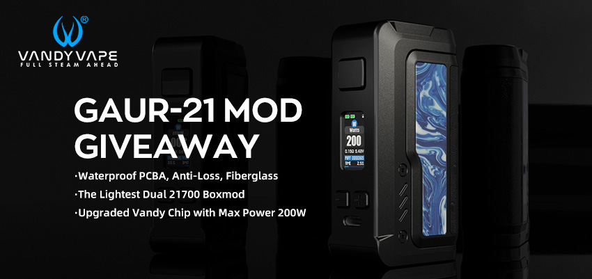 Vandy Vape Gaur-21 Mod Giveaway, 1 ganador, finaliza el 25 de noviembre