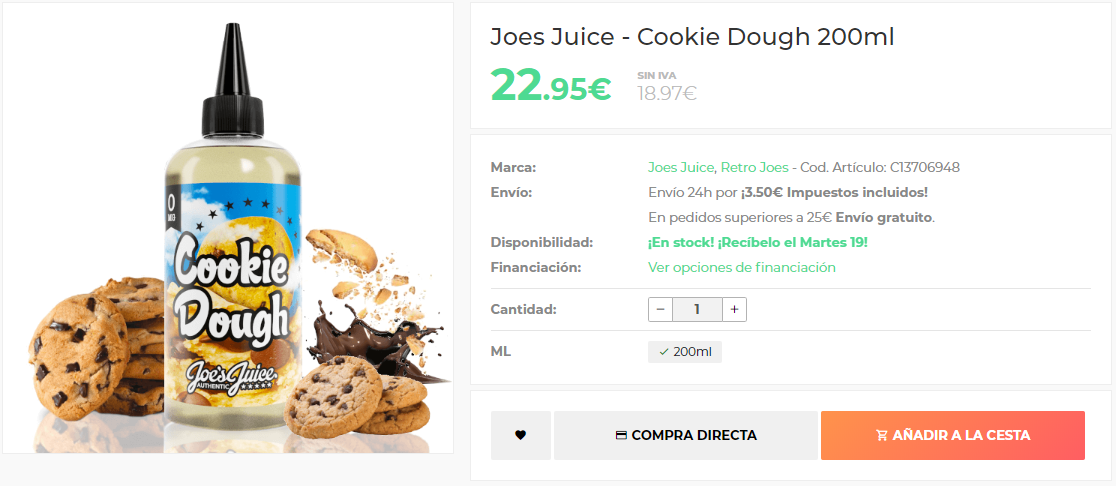 Comprar Cookie Dough 200ml Joes Juice Barato - 22.95€