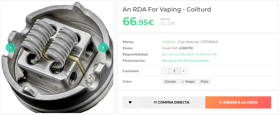 El reputado fabricante de Estados Unidos, Coilturd, llega con su última y nueva propuesta de RDA: An RDA For Vaping. Un Dual coil con una producción de vapor excepcional y un sabor inmejorable. ¡Una concepción impecable! Descubre el RDA del momento y del que todo el mundo habla.
