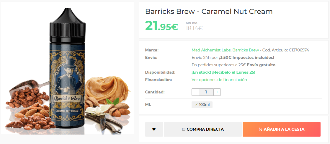 Comprar Caramel Nut Cream Barato (Barricks Brew) - 21.95€